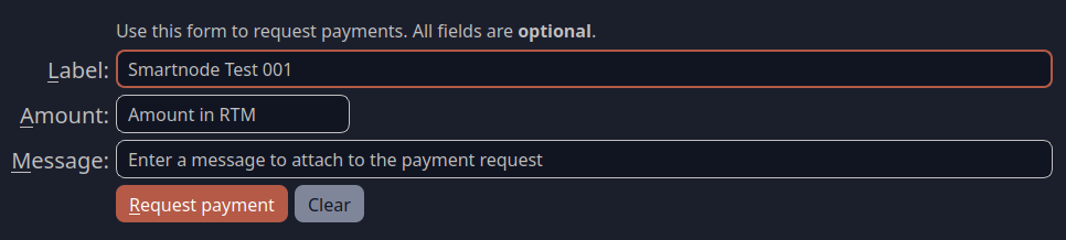 - Fee source address: This must be an RTM address containing a small RTM amount to cover the ProTX transaction. It must be an address on your wallet and cannot be your Smartnodes address. Find an address in your RTM core wallet to pay the fees (less than 1 RTM) and note/copy this address.