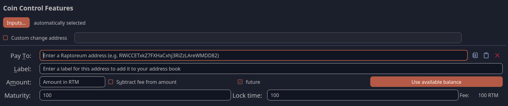To create a futures transaction in Raptoreum QT Core (desktop), do the following: